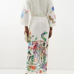 This Alémais Meagan Abstract-Print Linen Maxi Dress promises to capture attention with its vibrant abstract print. Crafted from 100% linen, the dress offers a perfect blend of comfort and style. The relaxed fit style ensures a comfortable drape over the figure, while the artistic print adds a touch of uniqueness. Details like the braided waist belt, wide sleeves, and side slits contribute to its feminine appeal.