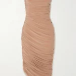 Norma Kamali’s iconic ‘Diana’ dress has undergone a number of tweaks since its debut in the ’70s but only increased in popularity. Lined with an internal bodysuit, this strapless version is made from super comfortable stretch-jersey thatโs draped throughout and falls to an asymmetric hem.