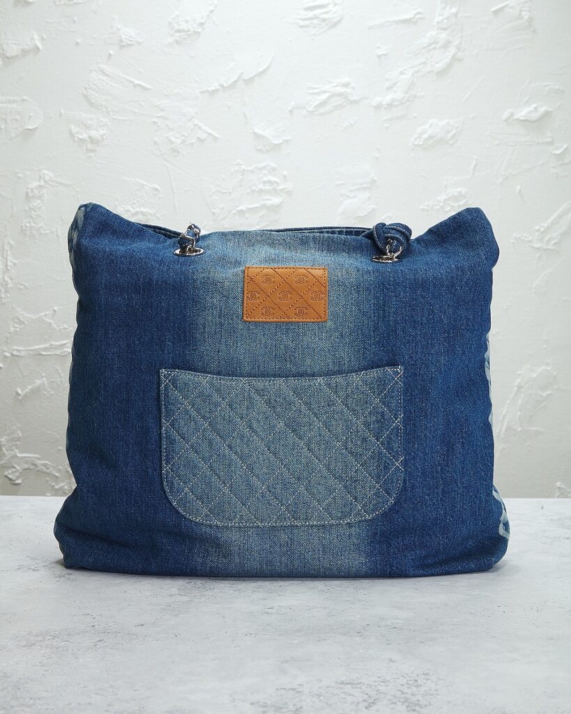 We love the timeless look of this denim tote bag, thanks to the classic blue denim construction. The silver CC charm accents make for a playful detail.
