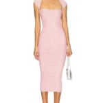 The SER.O.YA Kylie Midi Dress is a unique piece for people who enjoy minimalist sophistication with a twist. It is sleek, sculptural, and effortlessly chic. Clean lines, a square neckline or halter detail (depending on the style), and a dramatic midi length that lengthens the silhouette are all hallmarks of this body-contouring dress design.